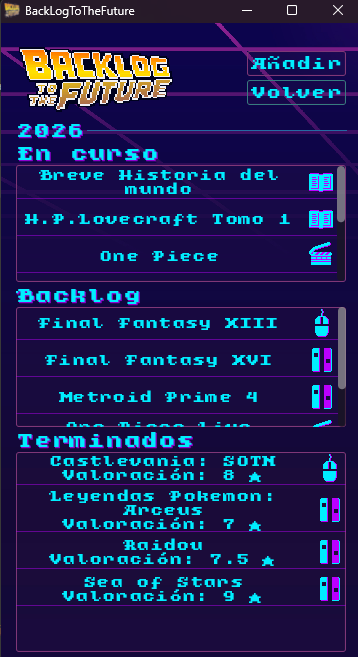 Backlog To The Future es una aplicación para gestionar y organizar tus colecciones personales de videojuegos, libros, películas y cualquier otro tipo de ítems que quieras tener bajo control.